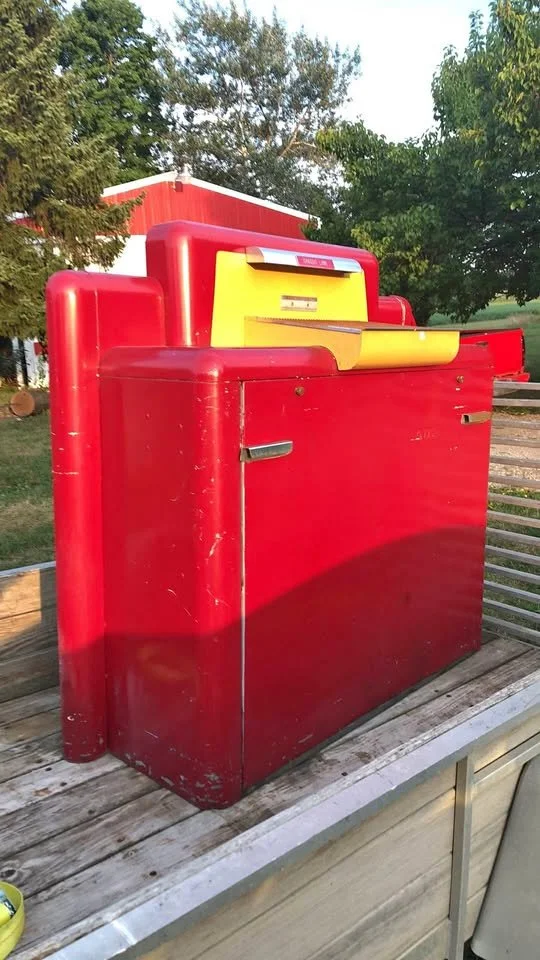 In 1946 this first incarnation of the Visualiner was built out of a stretched Lincoln merchandiser. The company decided to not move forward with this “on the door projection” design, and created their unique style cabinets for consumers in late ‘46.